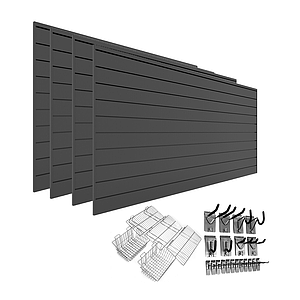 Charcoal 4 Pack - 8 ft. x 4 ft. PVC Slatwall with 11009